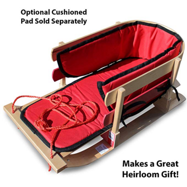 Wooden baby sleigh with pull rope *Hand crafted from ash wood *Steam bent backrest and runners *Includes protective bar for skis *Recommended for children from 1 to 4 years old *Brand new You're little one will enjoy being pulled gently along in this adorable Flexible Flyer Wooden Baby Sleigh. So wax up the sleigh and bundle up tight you're in for some winter fun!  Optional Flexible Flyer Pad for Pull Sled (Sold Separately).