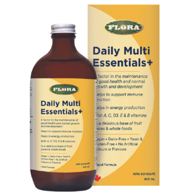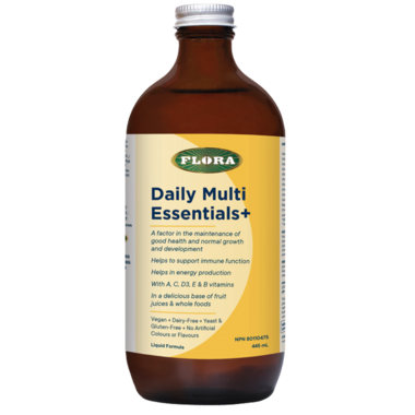 Flora’s Daily Multi Essentials+ is rich in immune-supporting vitamins A, C, D and E, protecting cells from free radicals, and include a full range of B vitamins for energy production. This comprehensive vitamin and mineral formula also includes an herbal blend of antioxidant astaxanthin, immune-supporting elderberry, and rose hips for extra vitamin C. Formulated for optimal digestion and absorption, this formula can be used by the whole family to support overall health and vitality and ensure any nutrient gaps in our diet are being filled. It comes in a tasty fruit juice and whole food base that is easy to drink straight or mix into smoothies or juice.