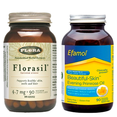 Promoting the growth of strong, flexible nails and lustrous hair with the Flora Healthy Skin Bundle.