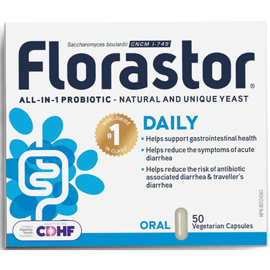 - CLINICALLY PROVEN EFFICACY - Backed by over 65 years of research, and more than 130 clinical trials, Florastor efficacity has been clinically studied. It reduces the risk of antibiotic-associated diarrhea by up to 84 % in adults.