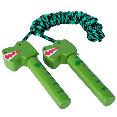 HOPSKIPŅ.JUMP.!! Make skipping extra fun with our bright and colourful Dino Jump Rope. Featuring hand painted wooden handles.