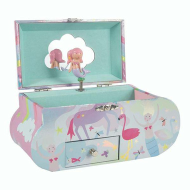 The Enchanted Jewellery Box is covered with gorgeous illustrations of unicorns, flamingos and mermaids with holographic, shiny hair! The handy drawer is perfect for storing treasured trinkets. Wind the key up at the back, then lift the lid to see a magical mermaid twirl around to the tune of ‘wish upon a star’