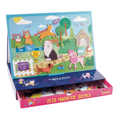This magnetic play scene feature two picture story interchangeable backdrops either Pets Playtime or Pets Salon. Hours of fun can be had creating masterpieces with over 50 magnetic pieces. Fold down the box lid and store the magnetic pieces in the handy drawer for easy storage, perfect for at home or on the go!