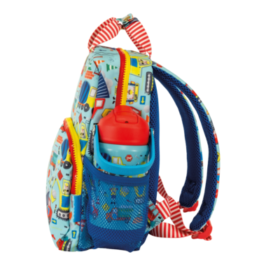 Perfect for adventures, the Floss & Rock backpack is the best addition to your next trip. Featuring a handy front pocket with a zip, padded, adjustable shoulder straps, funky multi-colour zips, 2 chunky fun shaped zip pulls, a side pocket for holding your drinks bottle and handy carry straps with super cool stripes. Great for ages 3 and up.