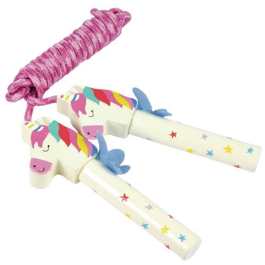 HOPSKIPŅ.JUMP.!! Make skipping extra fun with our bright and colourful Unicorn Jump Rope. Featuring hand painted wooden handles.