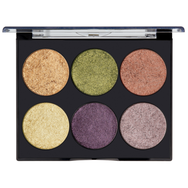 Rated 4 out of 5 by from Ultra-Foiled eyeshadows If you're looking for ULTRA foiled eyeshadows, look no further. The dark purple & green are more regular-metallic, but the others are seriously wet-looking mirror shine. Unfortunately you cannot get these to show up with their full impact unless you use your finger to apply- that was a big disappointment. All in all, I'm glad I purchased this for that beautiful purple in the lower right corner alone. It's stunning.