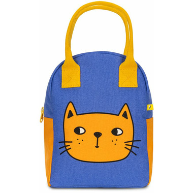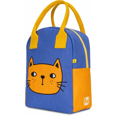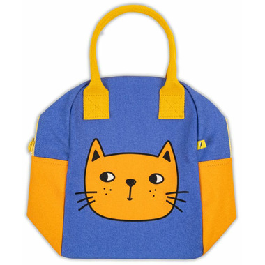 Deceptively roomy lunch bag that packs flat. Safe and non-toxic. Fully machine washable. Rinseable, tested food-safe lining to contain light spills. Interior pocket (for water bottle or ice pack). Sustainably and ethically made with organic + recycled materials.