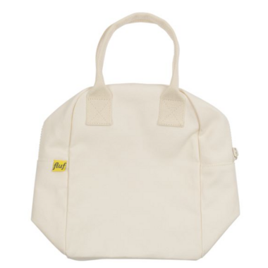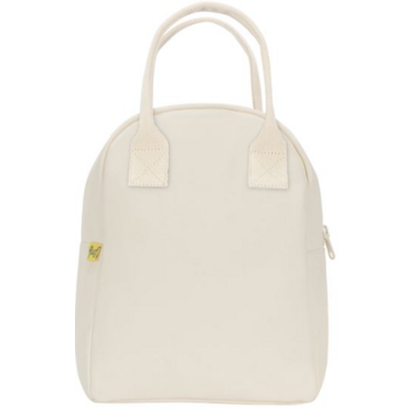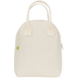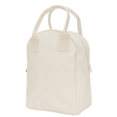 Deceptively roomy lunch bag that packs flat. Safe and non-toxic. Fully machine washable. Rinseable, tested food-safe lining to contain light spills. Interior pocket (for water bottle or ice pack). Sustainably and ethically made with organic + recycled materials.