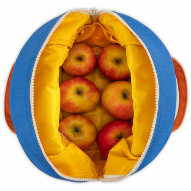 Deceptively roomy lunch bag that packs flat. Safe and non-toxic. Fully machine washable. Rinseable, tested food-safe lining to contain light spills. Interior pocket (for water bottle or ice pack). Sustainably and ethically made with organic + recycled materials.