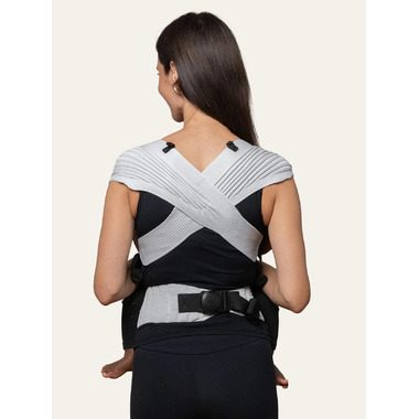 The FlyBaby baby carrier is the lightest and most compact carrier on the market., it fits into diaper bags, is made of flexible material with contour straps that evenly distrubutes the weight relieving shoulder and neck stress. It's one size fits all. It has a seamless design to prevent any pressure points.