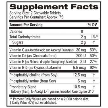 Recommended Use: As a dietary supplement for children 4 and over, chew 2 tablets per day with food.