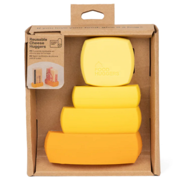 Cheese Huggers tightly seal the opened ends of cheese, keeping them fresh and tasty. They come in four different sizes that stretch to fit, securing the cut ends of leftover cheese. Made of BPA and phthalate free, 100% food safe silicone, reusable Cheese Huggers are the perfect alternatives to plastic wrap, aluminum foil and other single-use plastics.