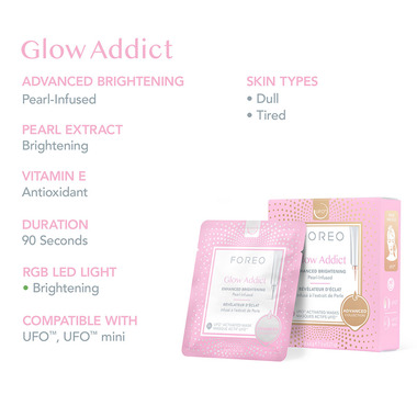 Ditch dull skin! The Glow Addict UFO Activated Masks brightening complex pairs with a skin-perfecting UFO or UFO mini treatment for an instantly luminous, more radiant complexion.