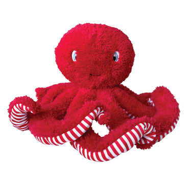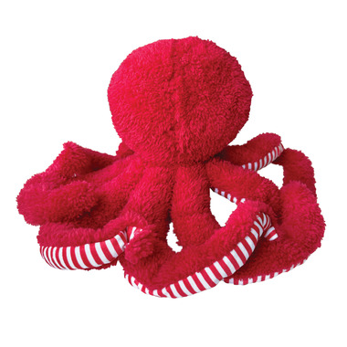 This adorable new toy is made with an incredibly soft fleece, accented with striped plush. The TenTICKLE Octopus is generously stuffed and features a hidden squeaker inside, ensuring this toy will capture your dogs attention. Dogs love the multiple plush tentacles to chew on and grab, make this toy perfect for tugging and tossing around. This toy is ideal for puppies to large breeds. Suitable for gentle chewers and de-fluffers.