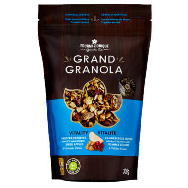 Grand Granola cereal blends offer everyone the opportunity to taste the essence of artisanal honey-toasted granola. They are made by Fourmi Bionique with a majority of locally sourced ingredients from Quebec. With a base of whole organic oats, rye, barley and spelt purchased from local farmers, you will enjoy theis deliciously satisfying granola.