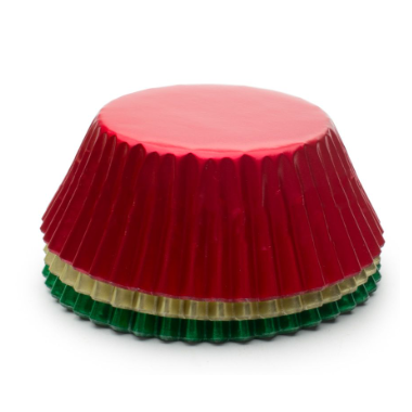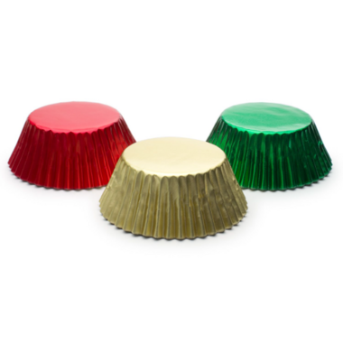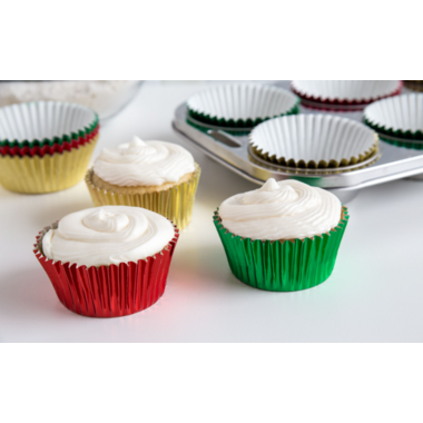 Time to get festive! These Christmas foil bake cups are sure to take your cupcakes up a notch. This set includes 45 standard size food-safe, fluted foil baking cups, so you can bake and serve tons of cupcakes for your guests. The colors included are green, red and gold, and the liners are grease-proof, so their outsides will remain shiny, bright and beautiful! Simply place in a muffin tin and fill with your favorite batter to dress up your cupcakes.