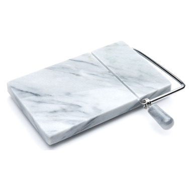 Serving a delicious cheese platter at your next gathering will add a touch of class while savoring all of your guests' taste buds at the same time. This attractive White Marble Cheese Slicer is perfect for your next occasion! Slice both hard and soft cheeses quickly and cleanly with the durable stainless steel wire, while the marble base keeps the cheese at a nice, cool temperature. Plastic feet elevate the board providing protection for your kitchen counter top and table. Create uniform slices every time and be the best host on the block with this marble cheese slicer!
