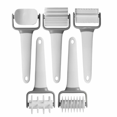 Includes a round biscuit ejector, square biscuit ejector, draping knife, hole punch, and stripper tool! Each pastry and pasta tool is easy to use! Just roll out your dough to the desired thickness and then roll the tools over the dough to get the shape or effect you are looking for.