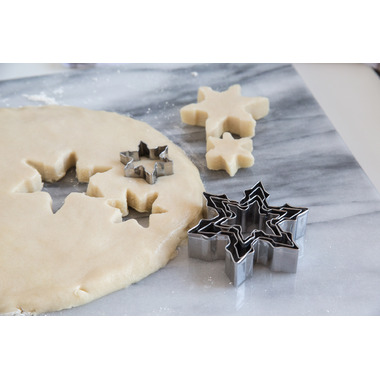Create fun to decorate Snowflake shaped cookies with this snowflake cookie cutter set. Perfect for Christmas time, these cookie cutters will slice through and release from dough easily, bringing ease to the cookie prep process.