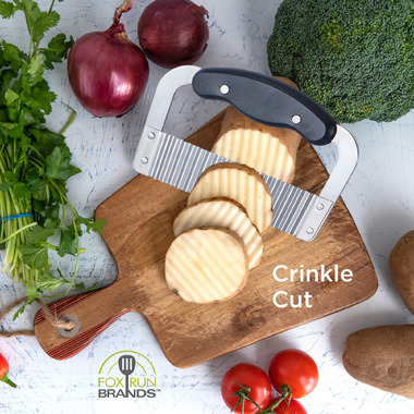 - CRINKLE CUT POTATOES AND VEGGIES: This metal crinkle cutter is the ideal kitchen gadget for creating wavy waffle fries, potato chips, pickle chips, or for making fruits and vegetables decorative and fun to eat!
