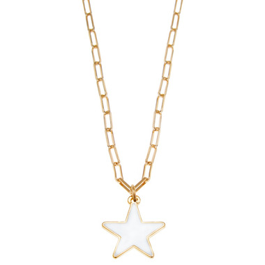 We're starry-eyed for this cutie! An enamel-filled white star is hung on a delicate paperclip link chain. A great layering piece to accompany a perfect summery outfit.