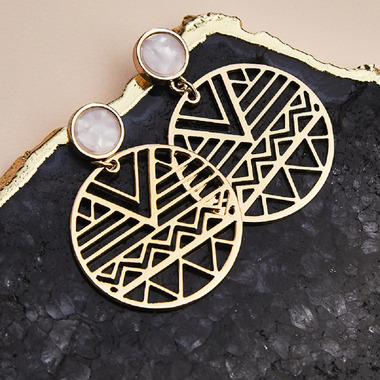 Large circular earrings featuring geometric cutouts easily transition from day to night, making sure your look is always on point.