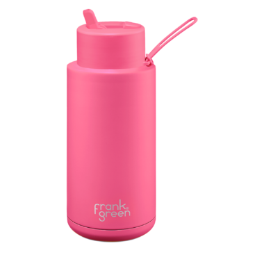 frank green Ceramic Reusable Bottle with Flip Straw Lid Neon Pink