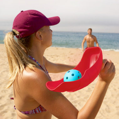 The Flip Toss from Franklin Sports is a fun handheld game you can play at the beach, at your next picnic or BBQ. The set includes 2 catch and toss scoops and 1 ball. The set includes a unique design element-spring action handle-for fast paced fun!