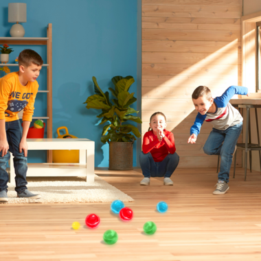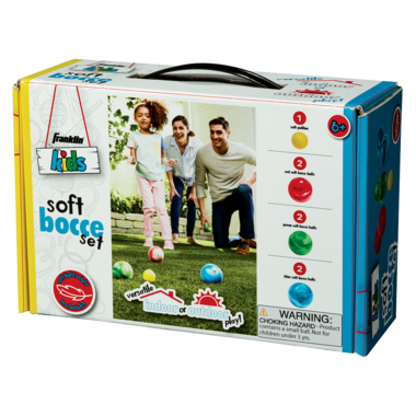 The Franklin Kids Soft Bocce set is a classic game made specifically for kids! This version of bocce is designed to be used either indoors or outdoor by creating a set made of soft durable material that kids can play with over and over. The set includes (6) 74mm all-weather soft PVC bocce balls and (1) 40mm soft scoring pallino. The set is the perfect size for smaller sized hands to grip and throw. Take this set to your next picnic, BBQ or indoor play group for a day of fun!