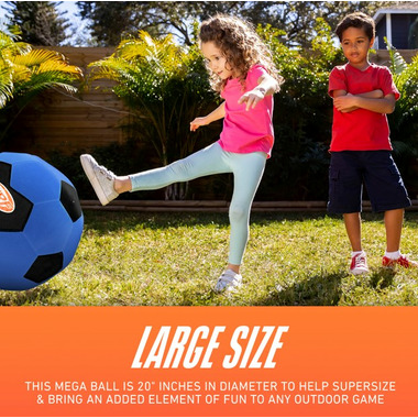 Get outside and have some good, old-fashioned backyard sports fun with the NERF 20" Inch Mega Ball! This giant kids multi-sport ball is perfect for a variety of fun outdoor sports and playground games. Kids can play kickball, soccer, volleyball, dodgeball and more with ease! This supersized 20" inch ball brings an added level of fun to any game and is sure to help kids get up and active with friends and family. Play any number of classic outdoor yard games or create your very own games, with the NERF Mega Ball the possibilities are endless! The extra large 20" ball is made of a soft outer telson mesh material with and inflated PVC core to provide some bounce with a soft feel. Designed for kids ages 6 and up, this ball is perfect for players of all ages to join in the fun.
