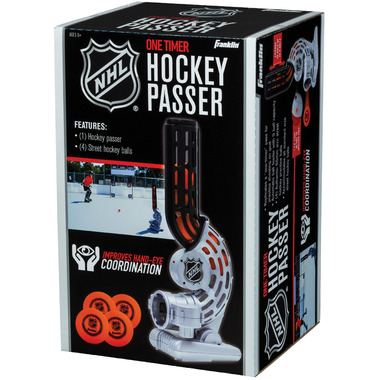 Ready, set, RIP! The Franklin Sports Automatic One-Timer Hockey Passer sets you up with perfect passes for your slapshots over and over again. Load up to 9 street hockey balls into the feeder at once and then just get yourself set for the pass. The LED light lets you know when the ball is coming so you can be ready to go bar down. This passer runs on 4 "D" batteries that are not included. Grab a passer and get shooting!