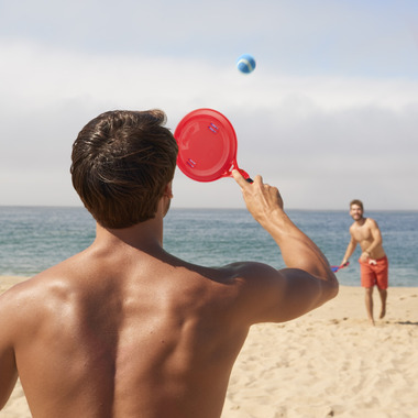 The Throw N Stick from Franklin Sports is a fun handheld game you can play at the beach, at your next picnic or BBQ. The set includes 2 catch mitts and 1 ball. The set includes a unique design element-spring action handle-for fast paced fun!