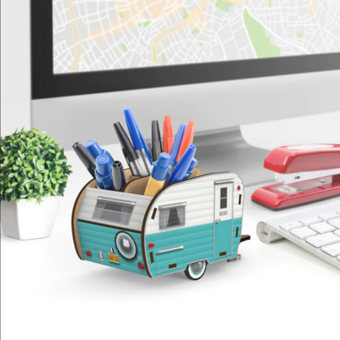 Fred's all-season Happy Camper pencil holder comes flat-packed with simple instructions for quick and easy assembly.