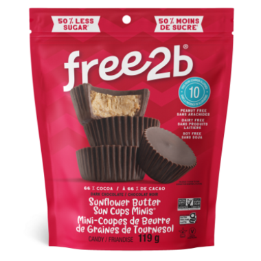 free2b Dark Chocolate Sunflower Butter Mini Cups made nut free, dairy free, and soy free!