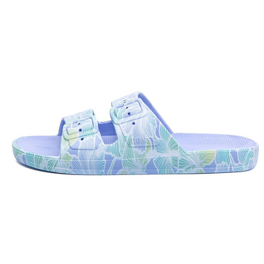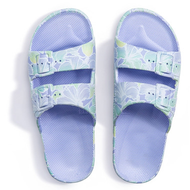Freedom Moses is all about celebrating summer 365 days a year. From AM to PM, Freedom Moses Vegan Kids Slides are injected with air so you feel like you're walking on a cloud. Whether chilling at the beach or just hanging out, they're also available for your whole crew, from kids slides to women's slides and men's slides, if you're into prints, glitters, metallics or basic colors they've got you covered.