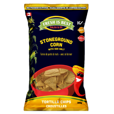 Fresh Is Best’s Stoneground Yellow Corn Chips are crafted from premium stoneground corn for a hearty, authentic flavor and satisfying crunch. These chips are perfect for dipping, snacking, or adding to your favorite recipes. With their bold corn taste and light dusting of sea salt, they bring the classic chip experience to life. The 300g bag is great for sharing with friends and family. Made in CANADA.