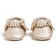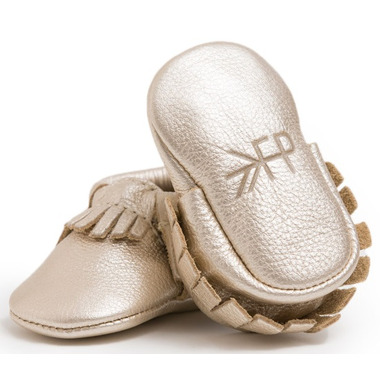 Style isn't reserved for those who've been home from the hospital for a few years! The newest infants dazzle in the Petite Platinum moccasins, designed to be soft for the softest, littlest feet.