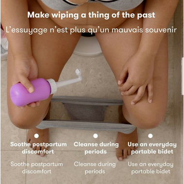 Toss the hospital peri bottle and get this bidet for your vajay. It’s the MomWasher for relief and postpartum care down there.