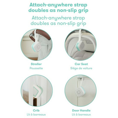 • ADJUSTABLE STRAP: Attach-anywhere strap hooks on strollers, car seats, cribs + more