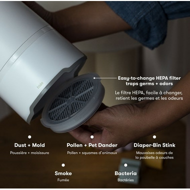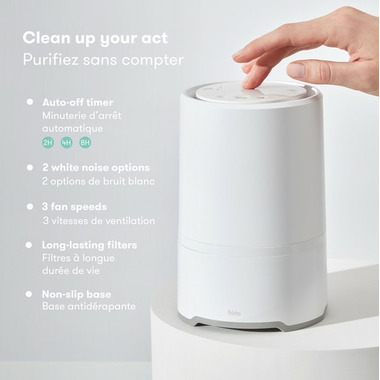 Need to clear the air? Filter out the bad stuff while lulling your little one to sleep with the 3-in-1 Air Purifier + Sound Machine + Nightlight. Remove dust mites, mold spores and air pollution thanks to the easy-change HEPA air filter. Choose from two sleepy sound options, three fan speeds and four nightlight colours to create the perfect ambiance for your kiddo to fall asleep. Simply plug in and breathe easy.
