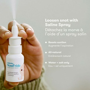 NoseFrida Saline Snot Spray is the all-natural, simple saline solution. And by simple they mean two ingredients - sea salt and water - that's all! The gentle formulation moisturizes nasal passages allowing for seamless snotsucking when used with the NoseFrida Nasal Aspirator. The small applicator tip is specially designed for the tiniest of tots. Go ahead and spray away - use as often as needed without any harmful side effects!