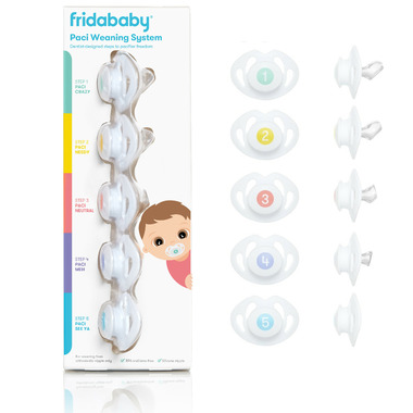 Dentists recommend kicking the paci habit by the time baby is 12 months old. fridababy's got the weaning process down to a science (literally!) with this 5-step system to ditch the pacifier for good. Each paci is progressively shorter - and less satisfying - so baby gives that binky the boot. No kitchen scissors required!