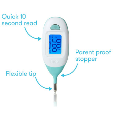 Fevers and newborns are not a good mix. Butt, knowing their temp, and knowing it quickly, is. The Quick-Read Rectal Thermometer gives you fast and accurate rectal temperature readings in just 10 seconds. Safe flexible tip and stopper make it parent-proof.
