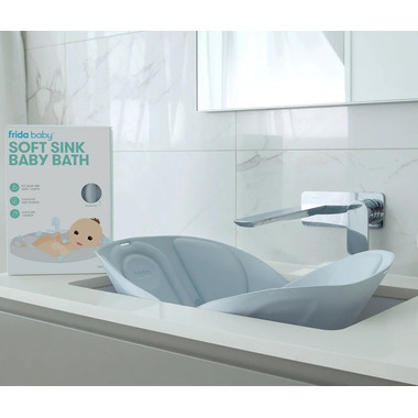 Turn almost any sink into a newborn spa sesh with the Soft Sink Baby Bath, designed to cushion + cradle baby from head to toe. Sides snap together to support a newborn, dries out quickly and folds up for easy storage and travel. Made of quick dry material, the Soft Sink Baby Bath is machine washable - or simply hang to dry. They sink it's pretty neat.