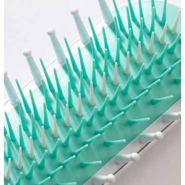 The Thick or Curly Hair Detangler brush helps manage your kid’s snarls and knots, without hurting their sensitive scalp. Designed specifically for thicker hair, the Hair Detangler brush comes equipped with strong comb-like bristles to get through the tougher tangles, along with softer bristles that glide through hair without causing damage or breakage (or tears!). Its protective storage cap keeps every bristle in place even when stuffed in your bag for on-the-go hair management.