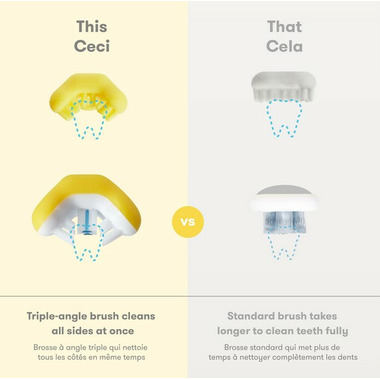• TRIPLE-ANGLE: Rounded, triple-angle bristles gently clean all sides at once