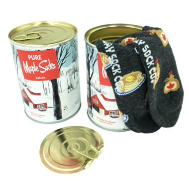 that is OEKO-TEX 100 Certified. These socks will arrive in an iconic maple syrup can!