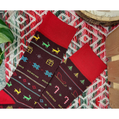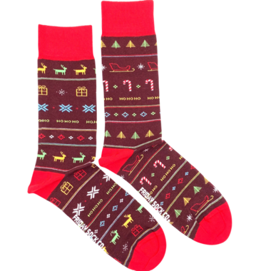 Friday Sock Co.'s socks in an ugly Christmas Sweater and Sleigh Ride design.