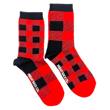 Friday Sock Co.'s socks in the Red Plaid design are purposely