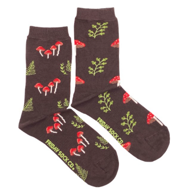 Friday Sock Co.'s socks in the Mushroom Forest design are purposely